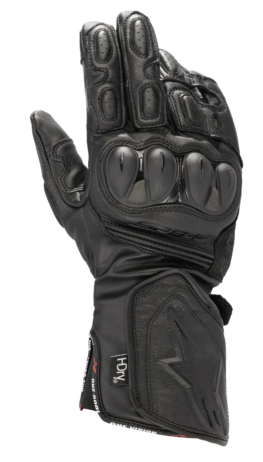 The Alpinestars SP 8 HDry Gloves are waterproof short cuff sport gloves built for riders who need leather protection and reliable rain performance for wet weather street and sport riding.