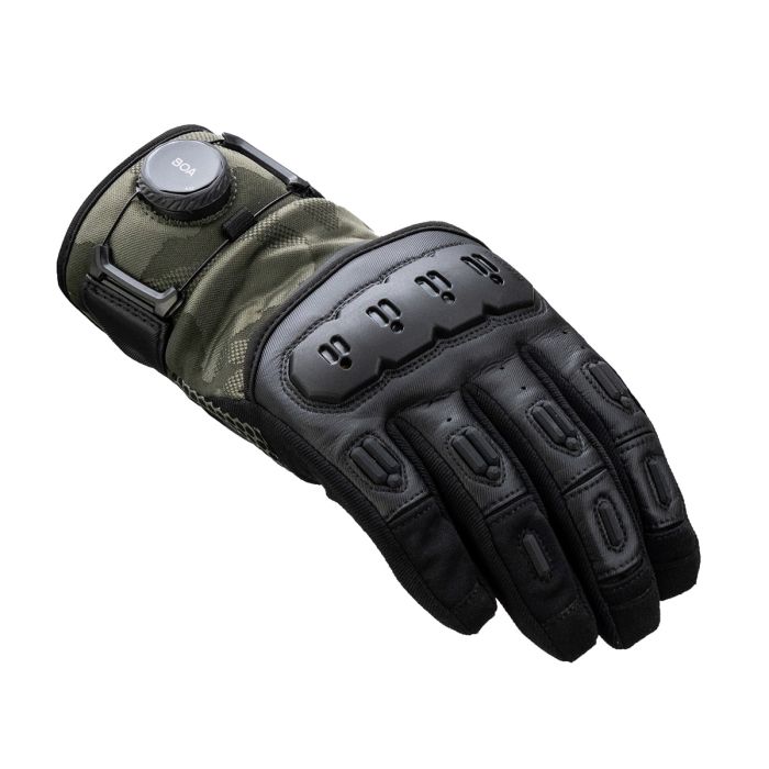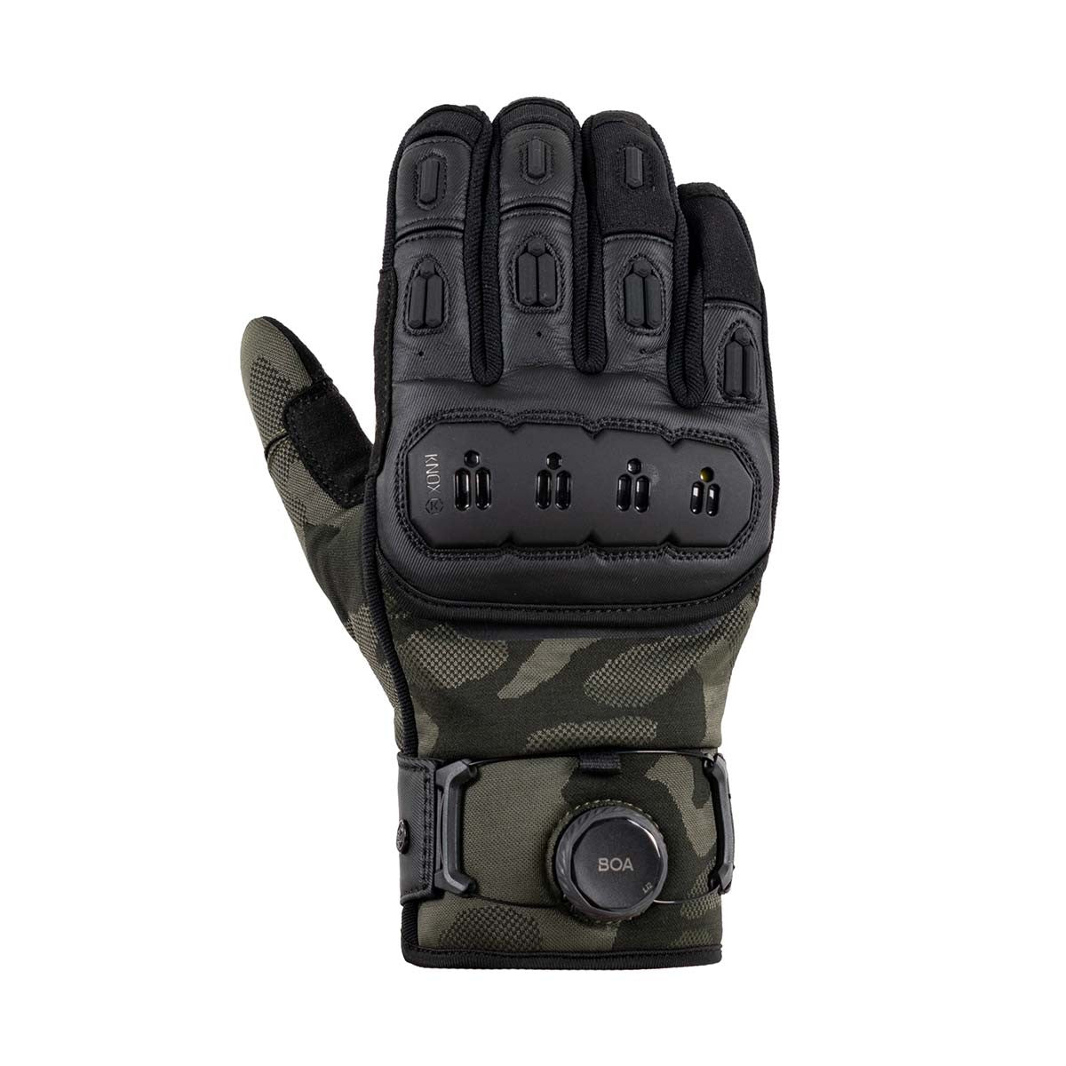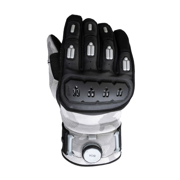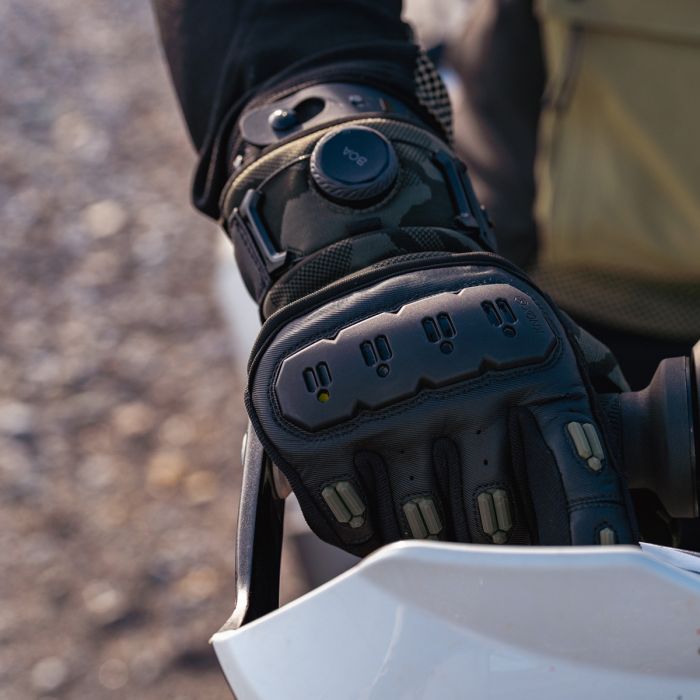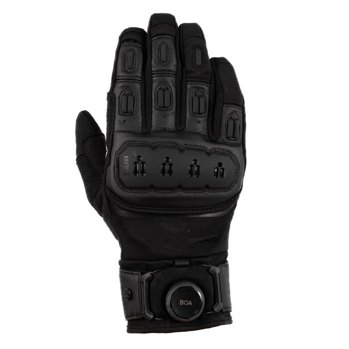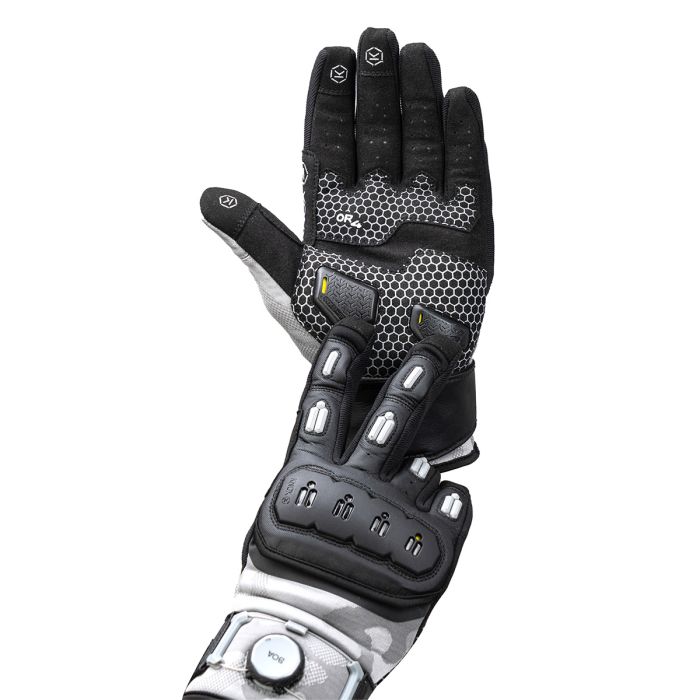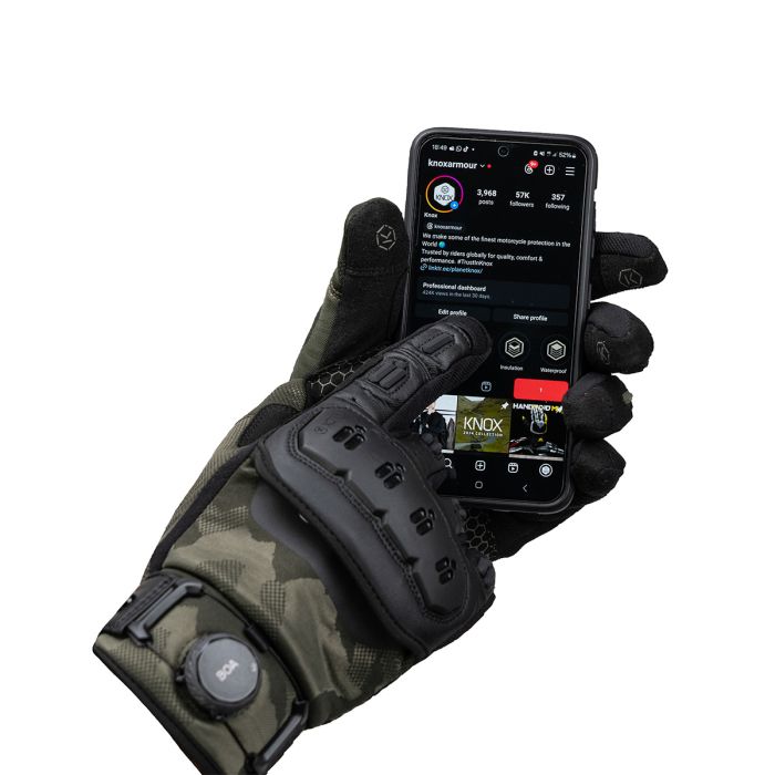 Knox introduces the Orsa OR4 gloves, an updated version of the much-loved Orsa OR3. The gloves feature an all-black textured monochrome camo knit as the breathable fabric base, providing both style and functionality. The black Clarino palm, with an additional Amara overlay, ensures a breathable and grippy surface for optimal control. The Orsa OR4 retains the exceptional fit, a combination of vegan leather and stretch fabrics, and a fantastic hand-feel without the need for breaking-in. The gloves also maintain their wrap-over finger construction and incorporate the patented Knox Impact Scaphoid Protection System on the palm for enhanced safety. New aesthetic improvements include moulded plastics on the fingers for increased abrasion resistance and a brand-new Knox Micro-Lock-filled, plastic floating knuckle. The stylish dark reflective print under the floating knuckle adds subtle visibility during the day and becomes reflective under lights. The wrist cuff and Boa fit system have been redesigned for an improved, dialled-in precision, micro-adjustable, and secure fit around the wrist. As with all Knox gloves, the Orsa OR4 comes with touch screen capability, allowing riders to use their devices without removing the gloves.