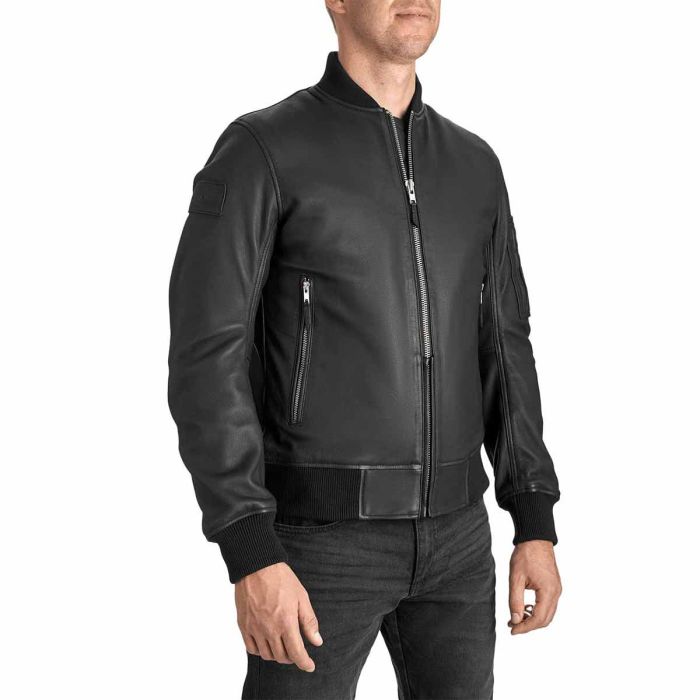FALCON LEATHER AVIATOR JACKET BLACK - Men's Leather Motorcycle Jacket