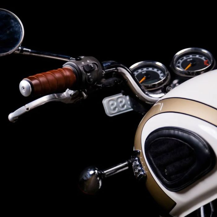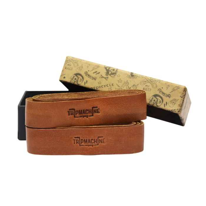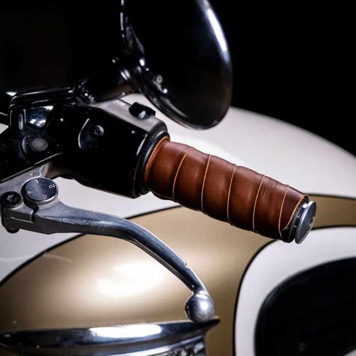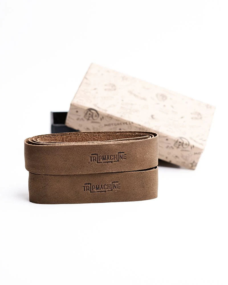 The Trip Machine Grip Wraps are an excellent option for those looking to elevate the look of their handlebars without breaking the bank. They're designed for easy, do-it-yourself installation, thanks to the heavy-duty 3M tape backing the leather. Just wrap them around your existing grips, and you're all set to hit the road. Not only do these wraps add a stylish touch, but they're also practical for riders. They significantly dampen handlebar vibrations and enhance your grip, particularly when you're wearing gloves, making for a more comfortable ride.
