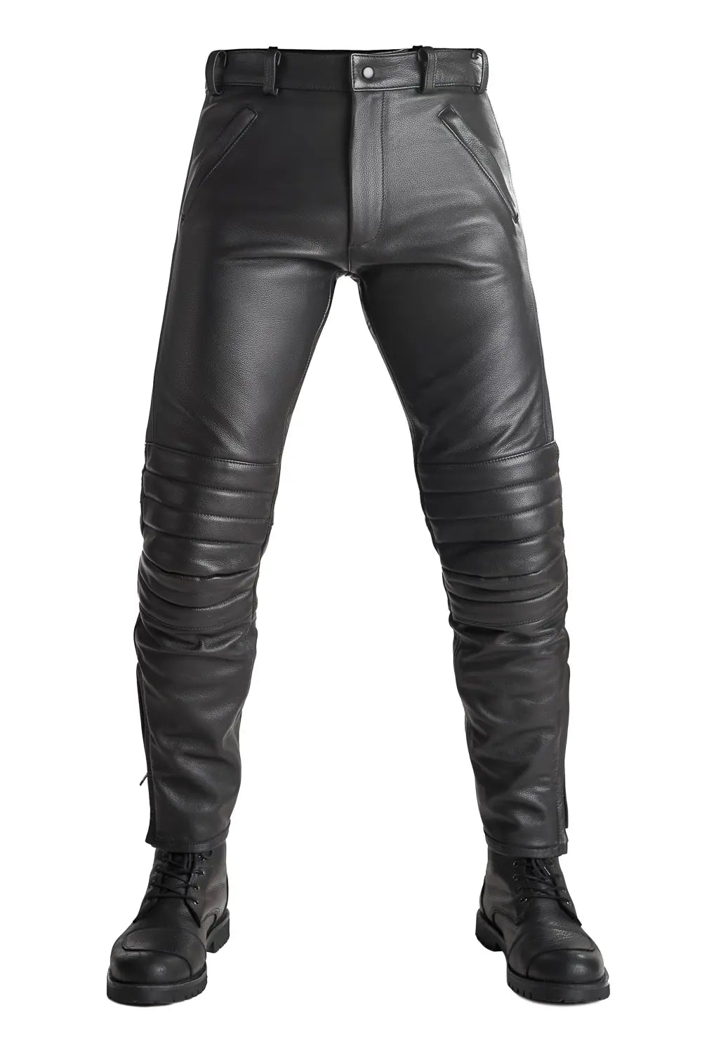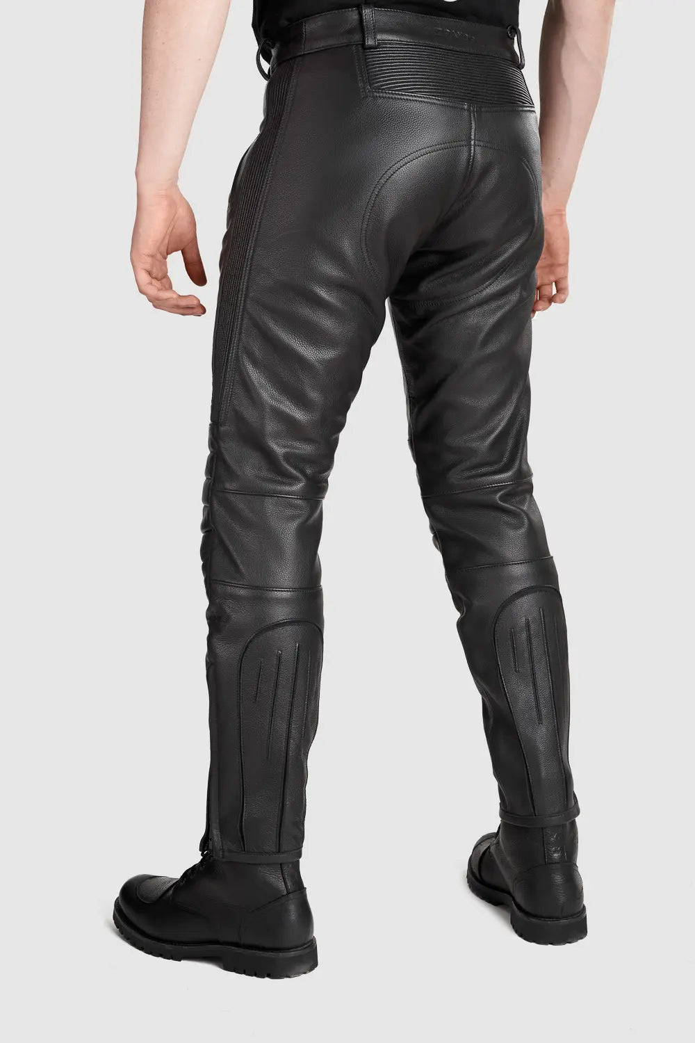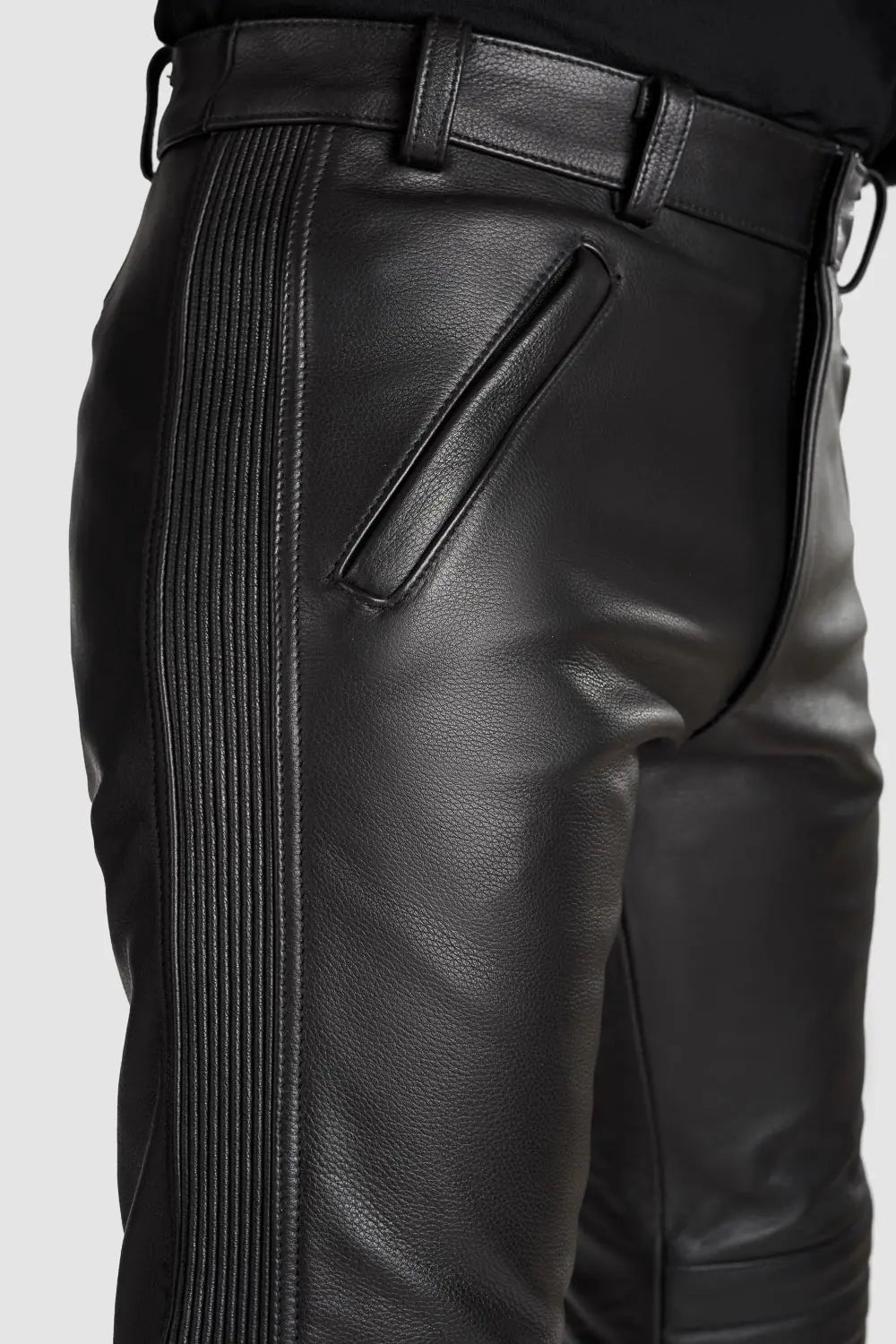 - Men’s leather trousers inspired by both past and future. Made of black 1.2mm thickness cow super milled leather