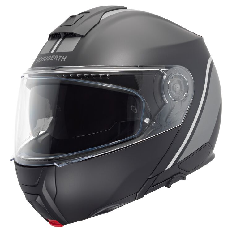The Schuberth C5 Route Helmet is the newest "C" helmet that continues to blend safety, superior aerodynamics and a light design. The unmistakable German engineering and radical, compact shell design of the Schuberth C5 set a new standard for premium modular touring helmets. Featuring a new liner and the same 2 shell sizes (XS-LG, XL-3XL), the lean form of the Schuberth C5 Helmet has been extensively optimized for both stability at speed and low weight to minimize fatigue on long tours. Discover a riding experience similar to sitting in the cabin of a luxury German sports car. The Schuberth C5 Helmet is designed for riders who accept only the best, and can appreciate the difference.