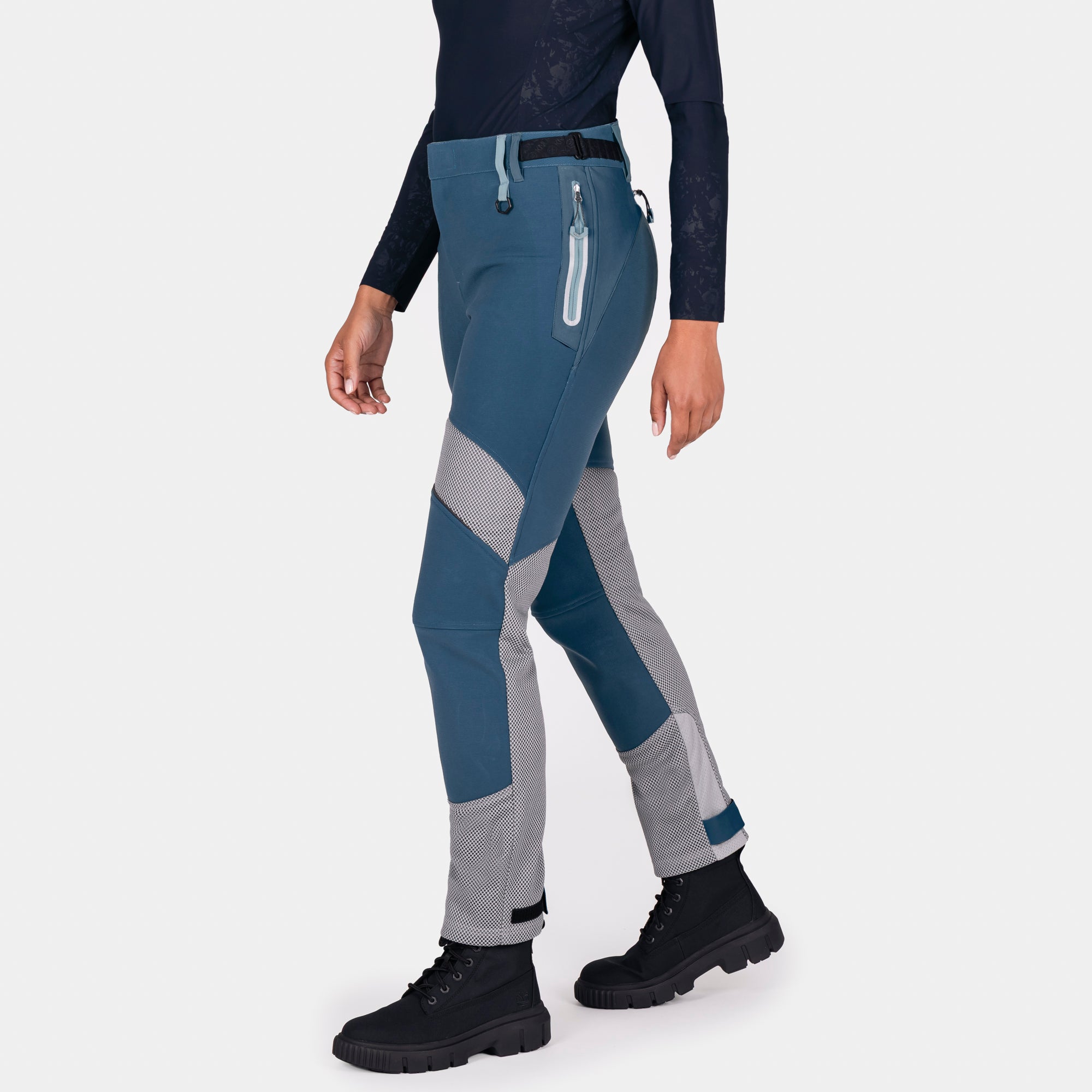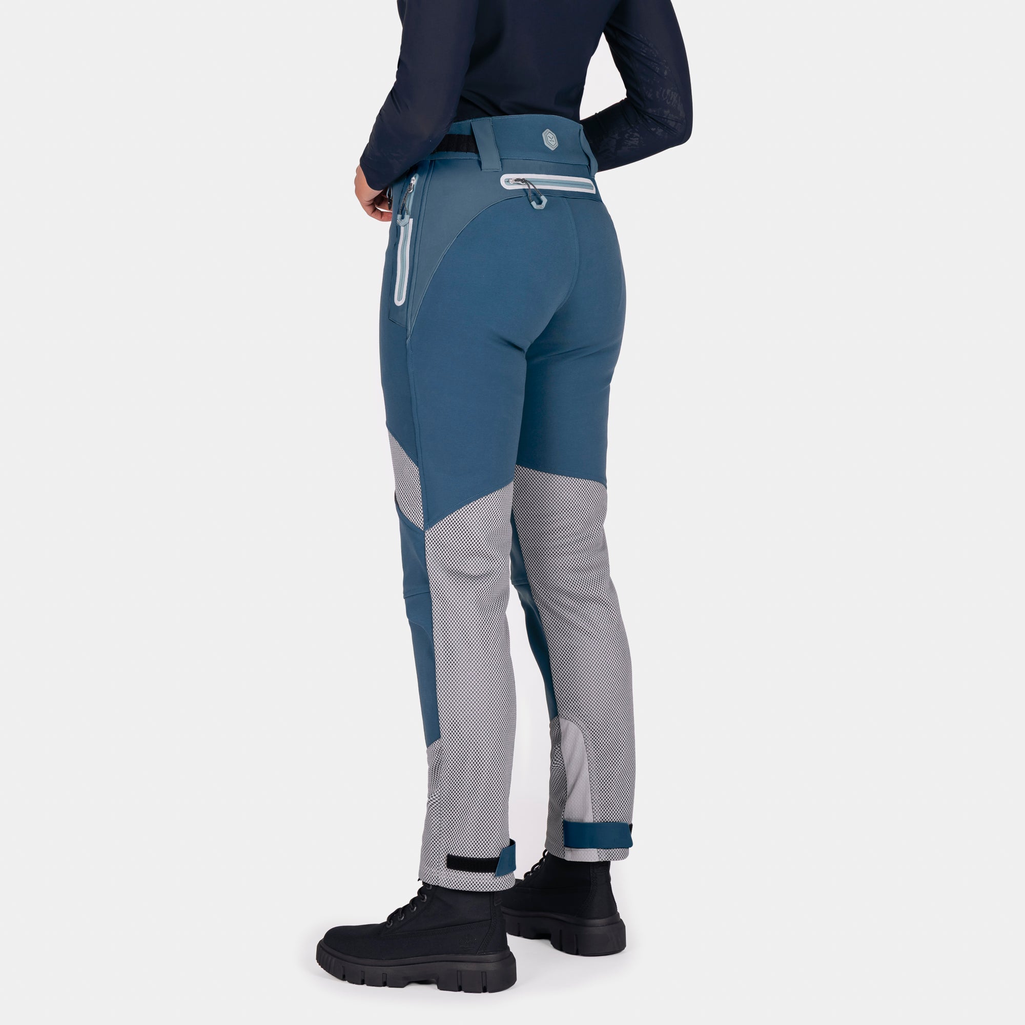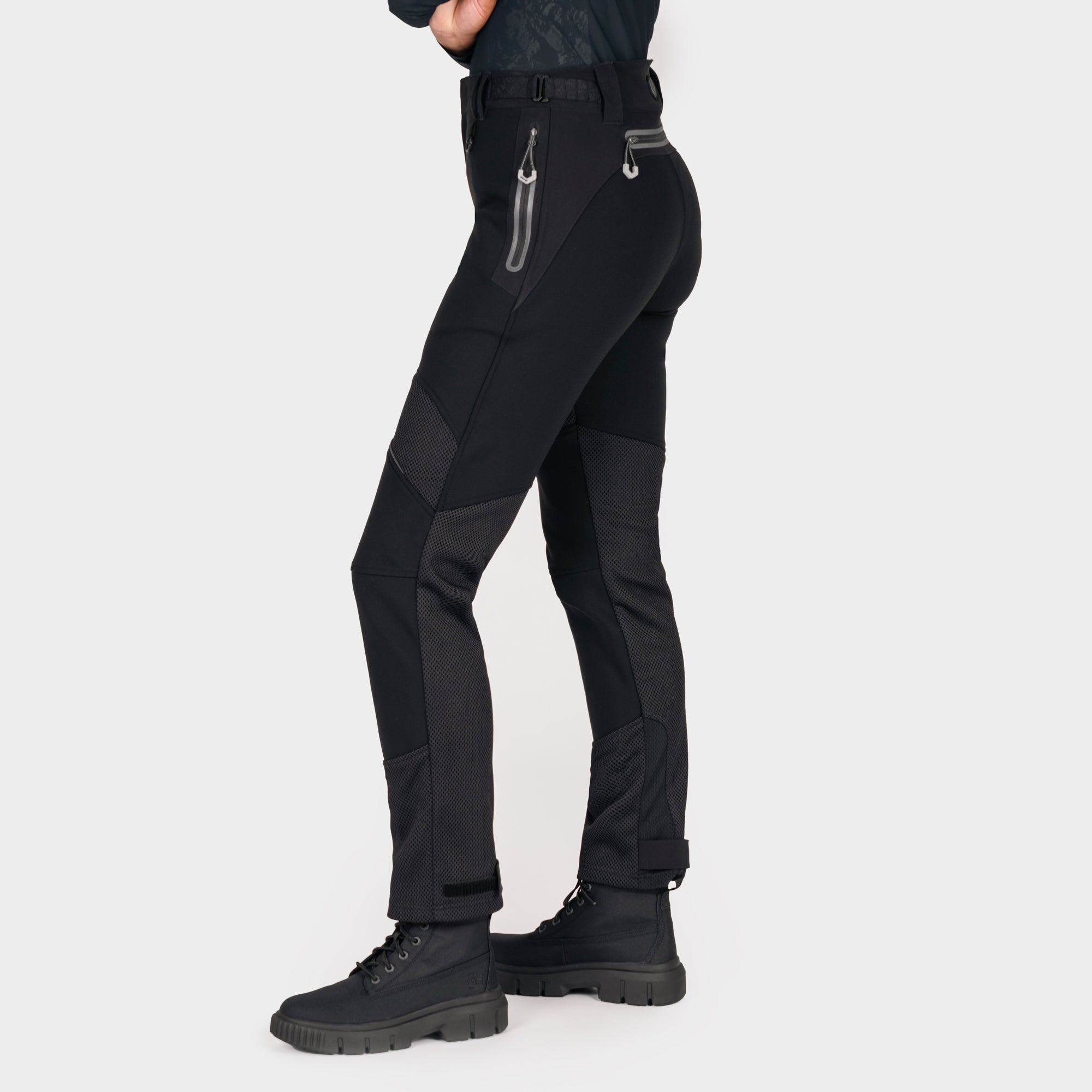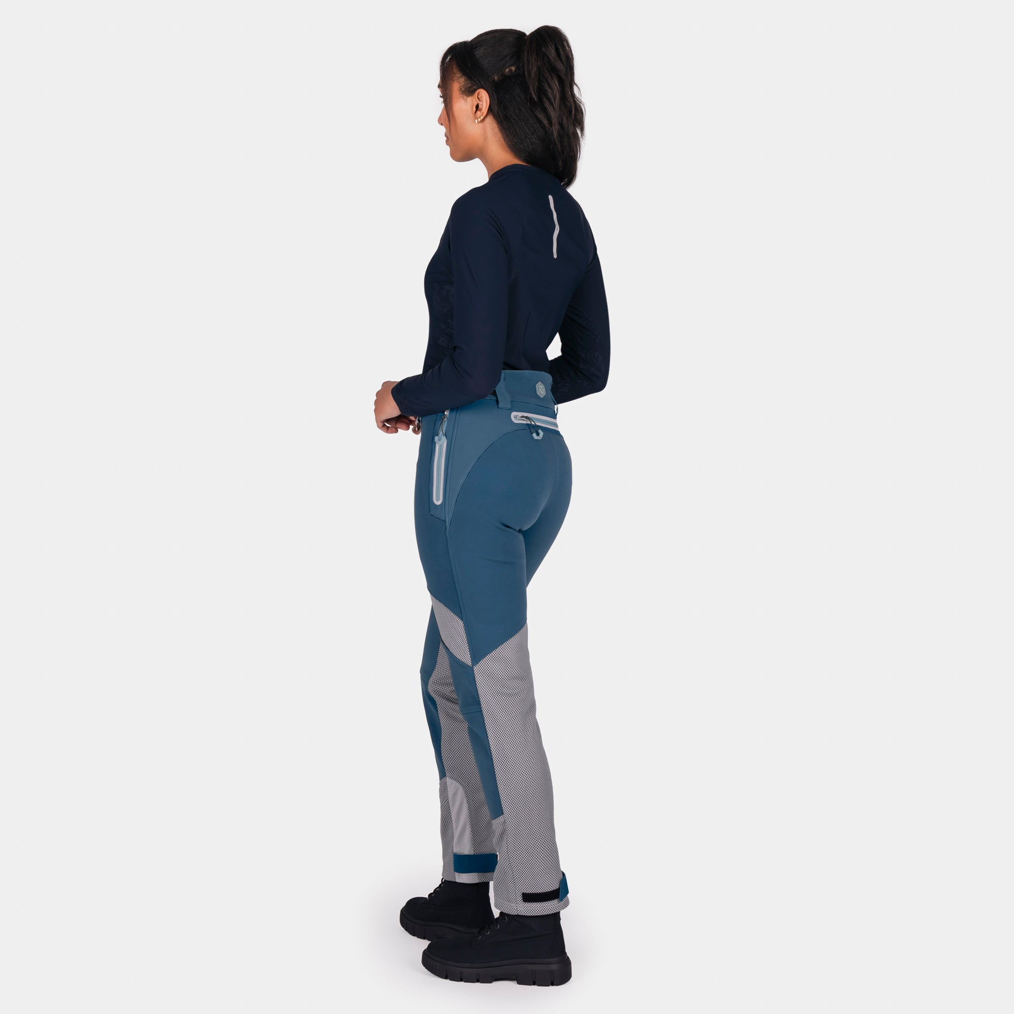 A flattering high-waisted cut provides a sculpted silhouette, while the refined waistband and adjustable side fasteners ensure a secure, comfortable fit. The Lift & Lock® hem adjustment system allows easy wear inside or outside boots, and the magnetic fly closure delivers quick, confident fastening. Designed to integrate seamlessly with any Knox armoured shirt, these trousers form part of a complete protective riding system—keeping armour exactly where it should be.